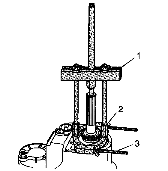 29. Using the J 44707 (1), the J 44759 (2), and the J 36513 (3), remove the speed sensor reluctor wheel from the rear output shaft.