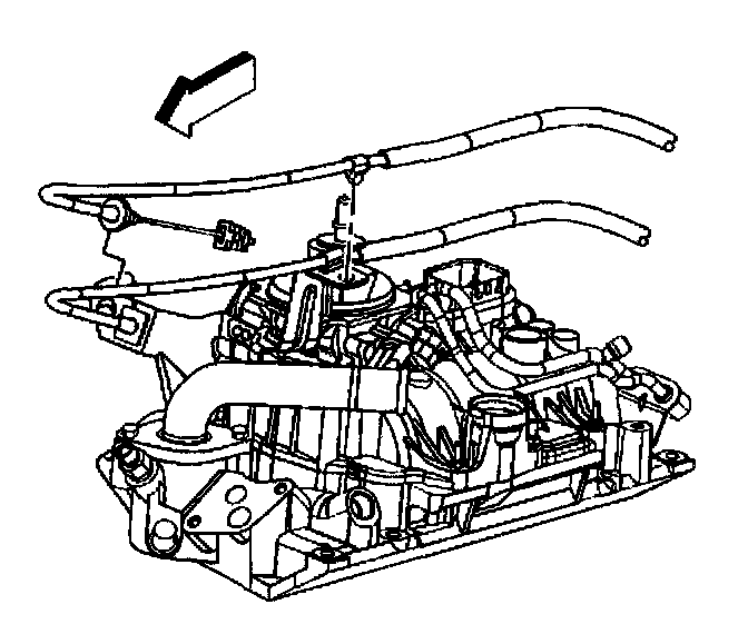 1. Disconnect the cruise control cable locator clip from the outboard rectangular hole in the routing bracket at the left front corner of the engine.
