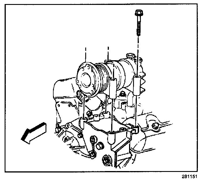 3. Remove the A/C compressor hose assembly bolt from the A/C compressor.