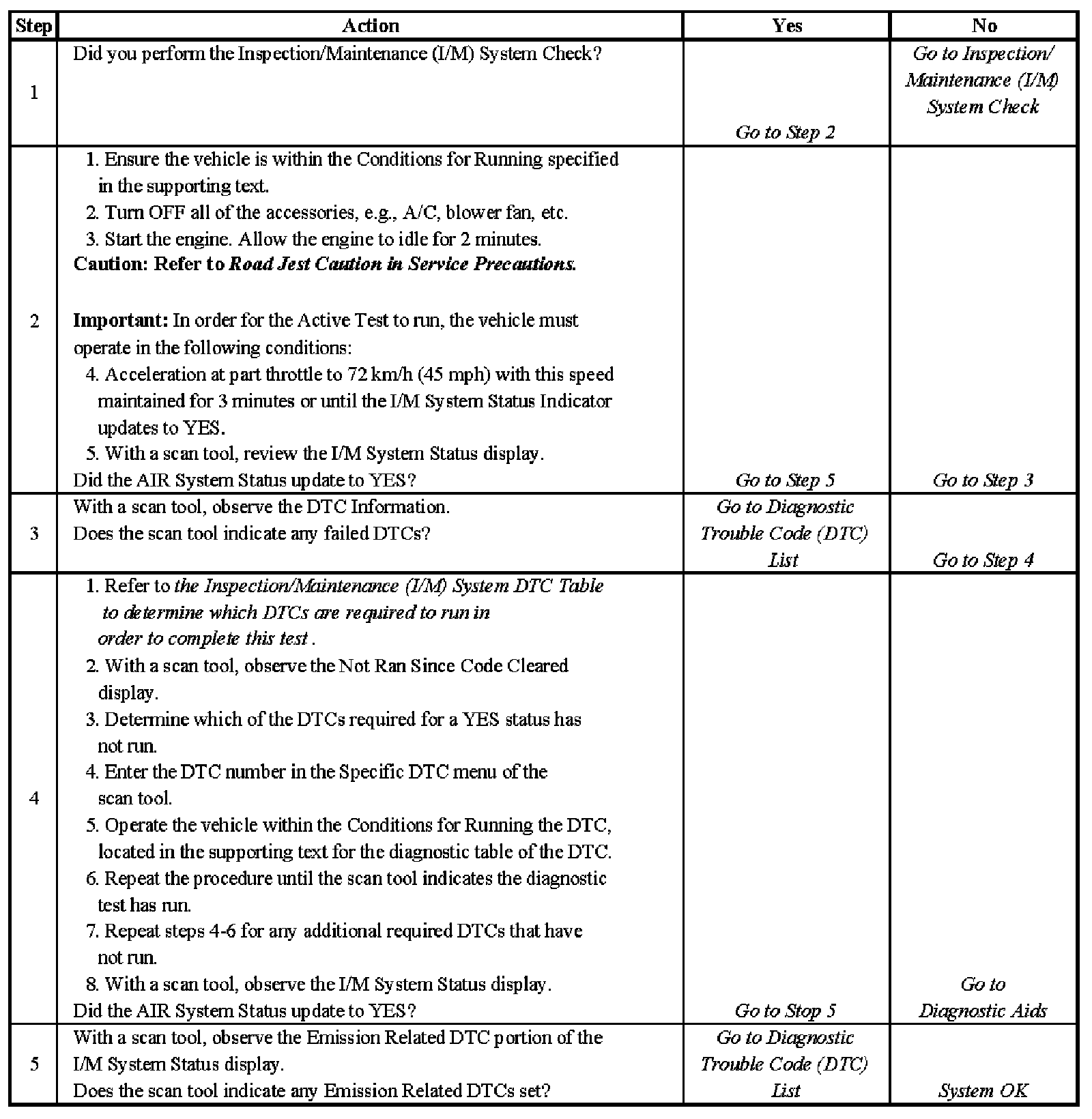 1. Make sure you perform the I/M System Check before performing this test. Failure to do so may result in difficulty updating the status to YES. Inspection/Maintenance (I/M) System Check