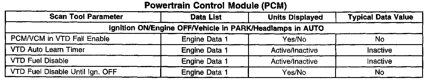 Scan Tool Data List - Antitheft System