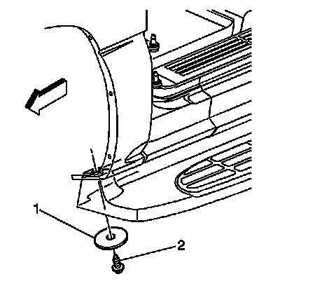 6. Install the bottom fender bolt (2) and the washer to the vehicle.