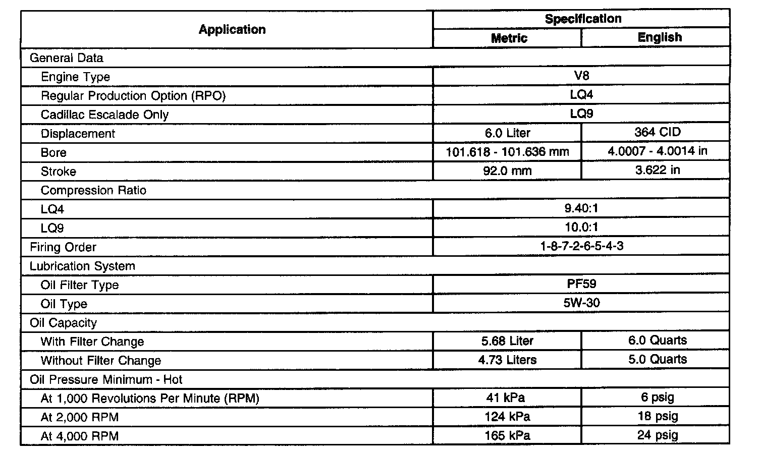 Engine Mechanical Specifications
