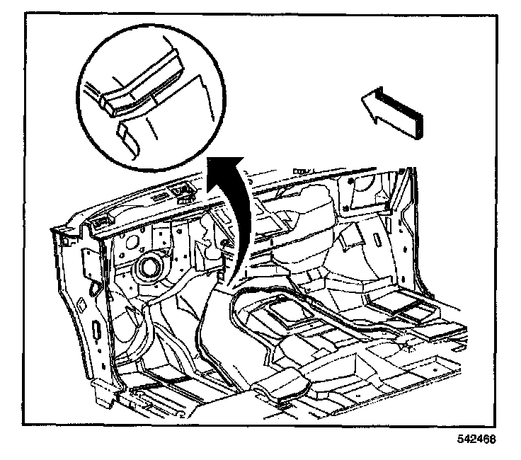 2. Install the passenger seat wiring harness to the right rear floor air outlet.