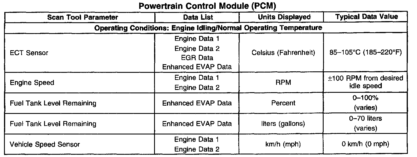 Scan Tool Data List - Powertrain Control Module (PCM)