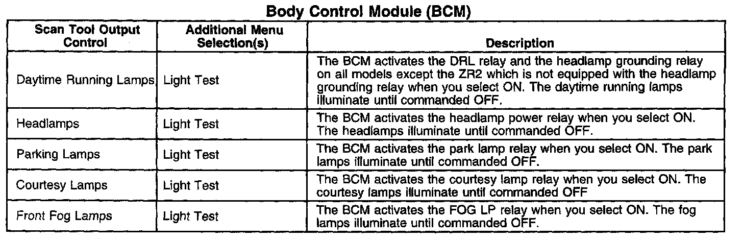 Scan Tool Output Controls - Body Control Module (BCM)