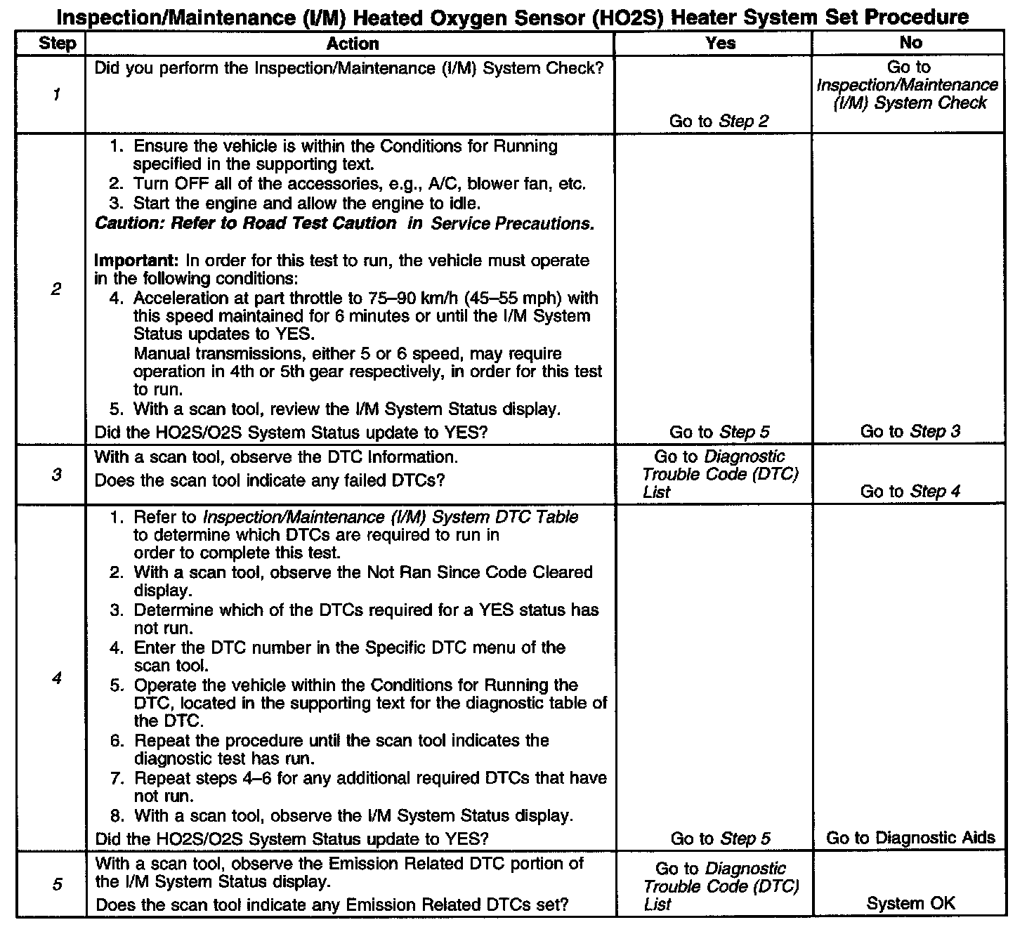 1. Make sure you perform the I/M System Check before performing this test. Failure to do so may result in difficulty updating the status to YES. Inspection/Maintenance (I/M) System Check