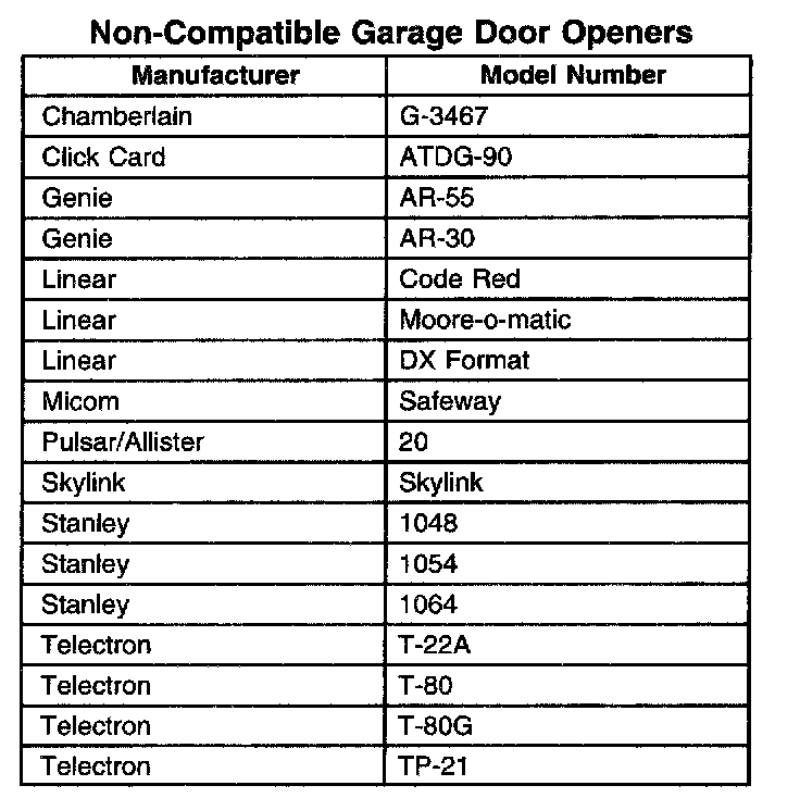 NON-COMPATIBLE GARAGE DOOR OPENERS