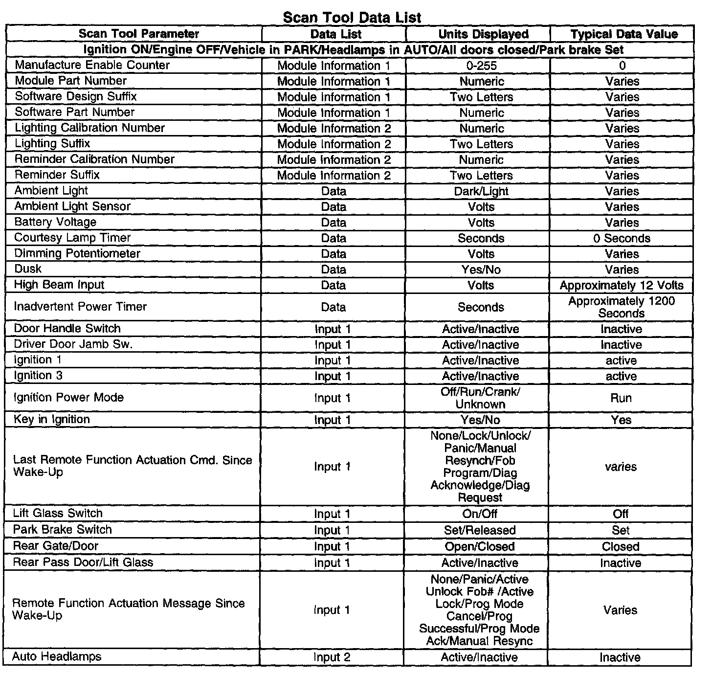 Scan Tool Data List Part 1:
