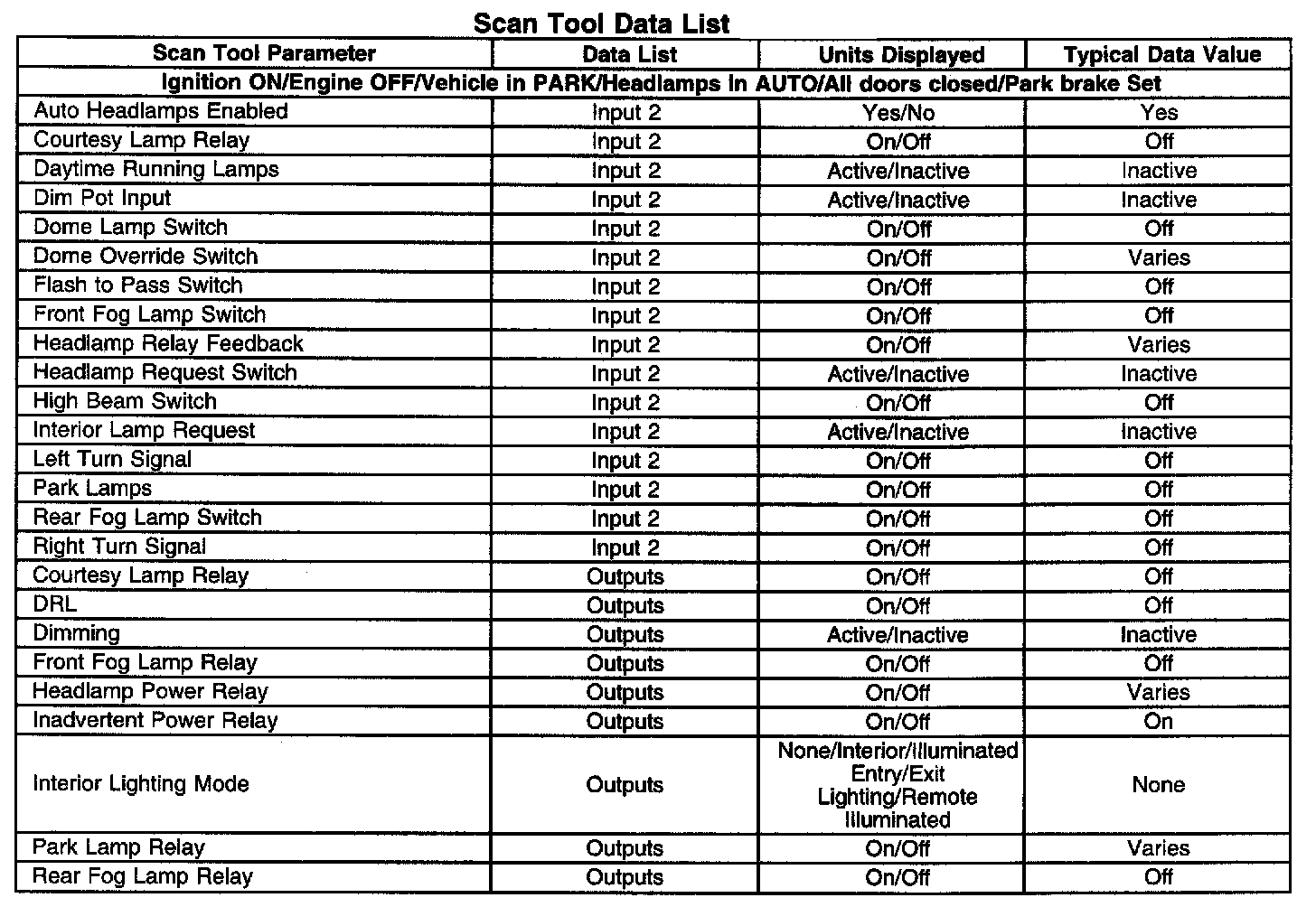 Scan Tool Data List