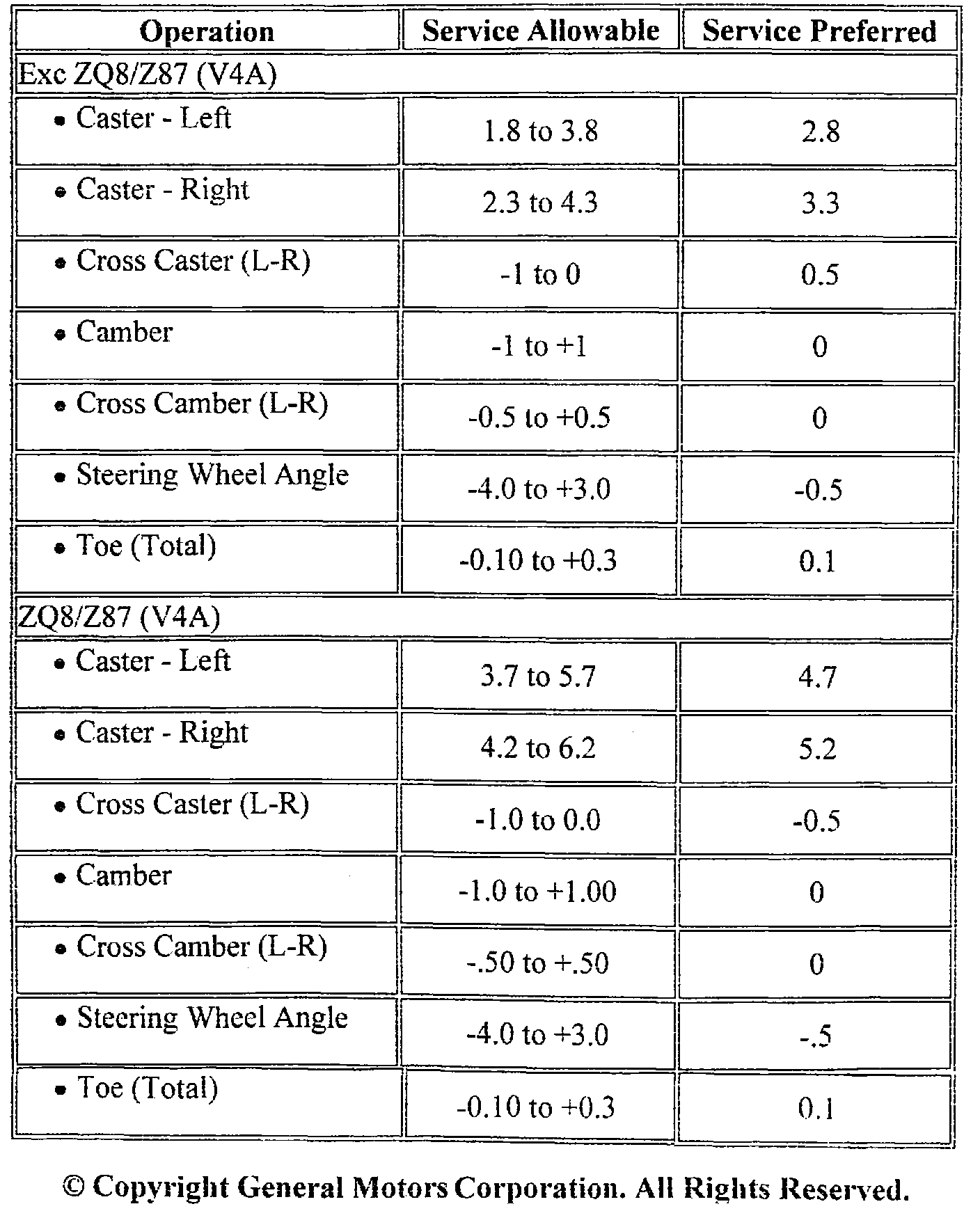 Wheel Alignment Specifications