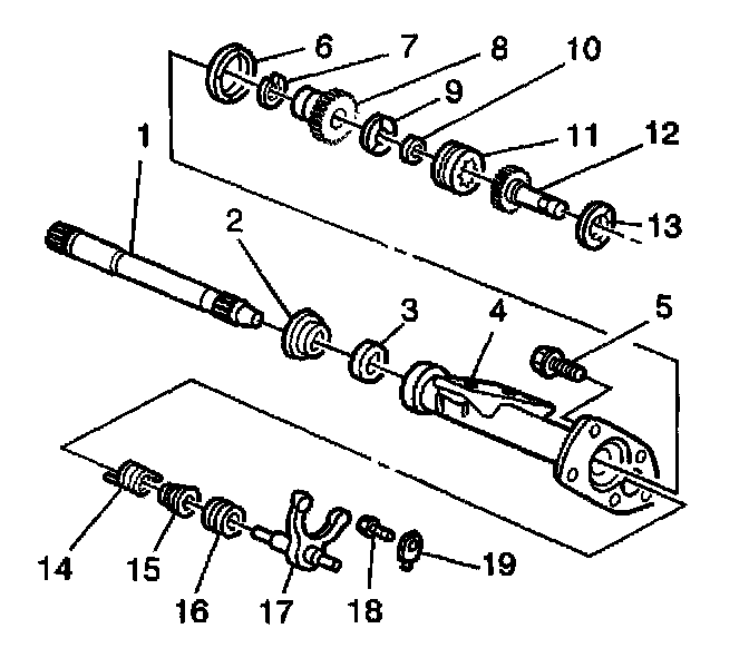 4. Remove the clutch fork (17) and the clutch fork inner spring (16) from the inner axle shaft housing.
