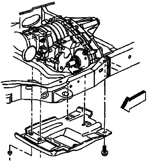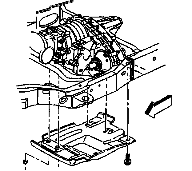 2. Install the transfer case shield mounting bolts from the transfer case shield.