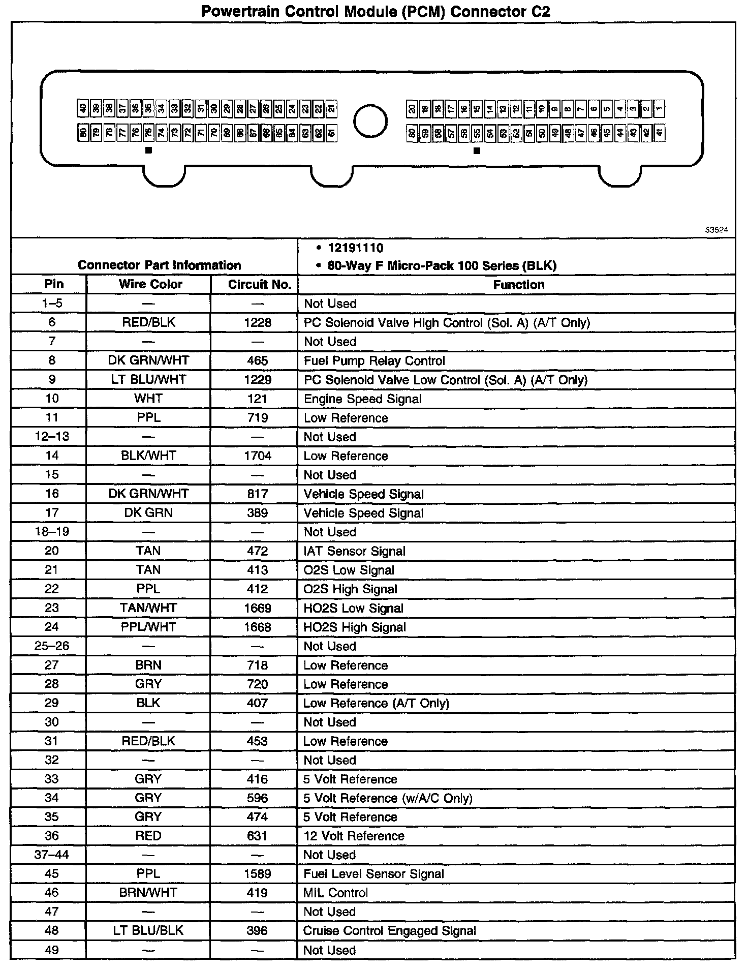 Powertrain Control Module (PCM) Connector C2 Part 1: