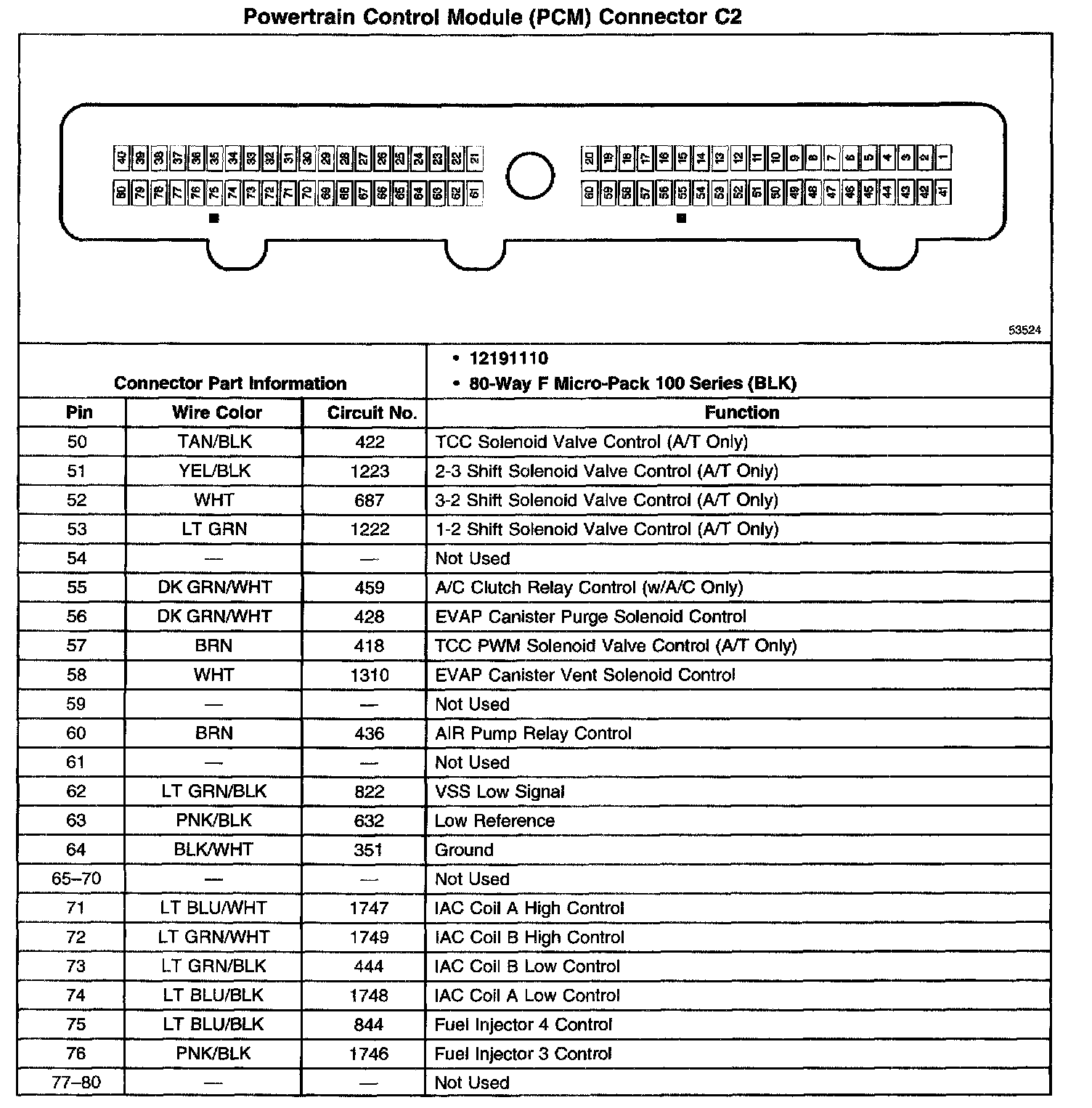 Powertrain Control Module (PCM) Connector C2 Part 2: