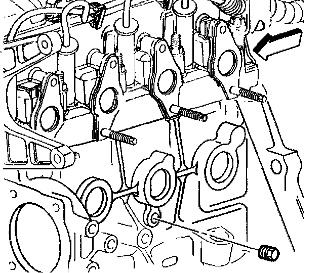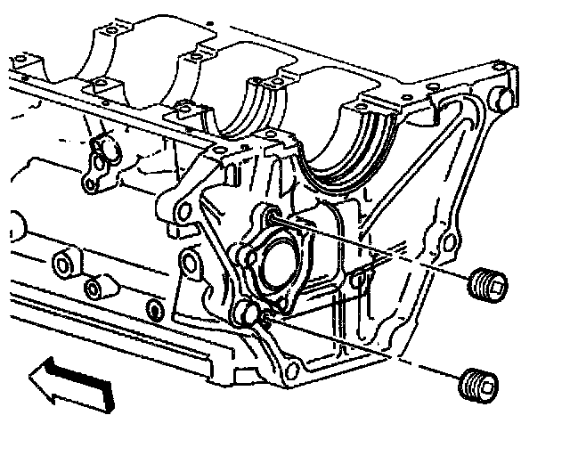 Important: The front oil passage plug is a special type with a lubrication hole for the timing chain. Do not install any other type of plug in this oil passage.