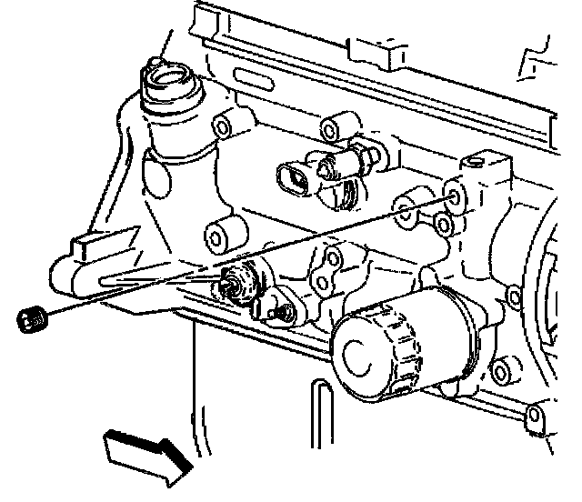 9. Apply gasket paste GM P/N United States 12346004, GM P/N Canada 10953480 to the upper oil passage plug before installation.