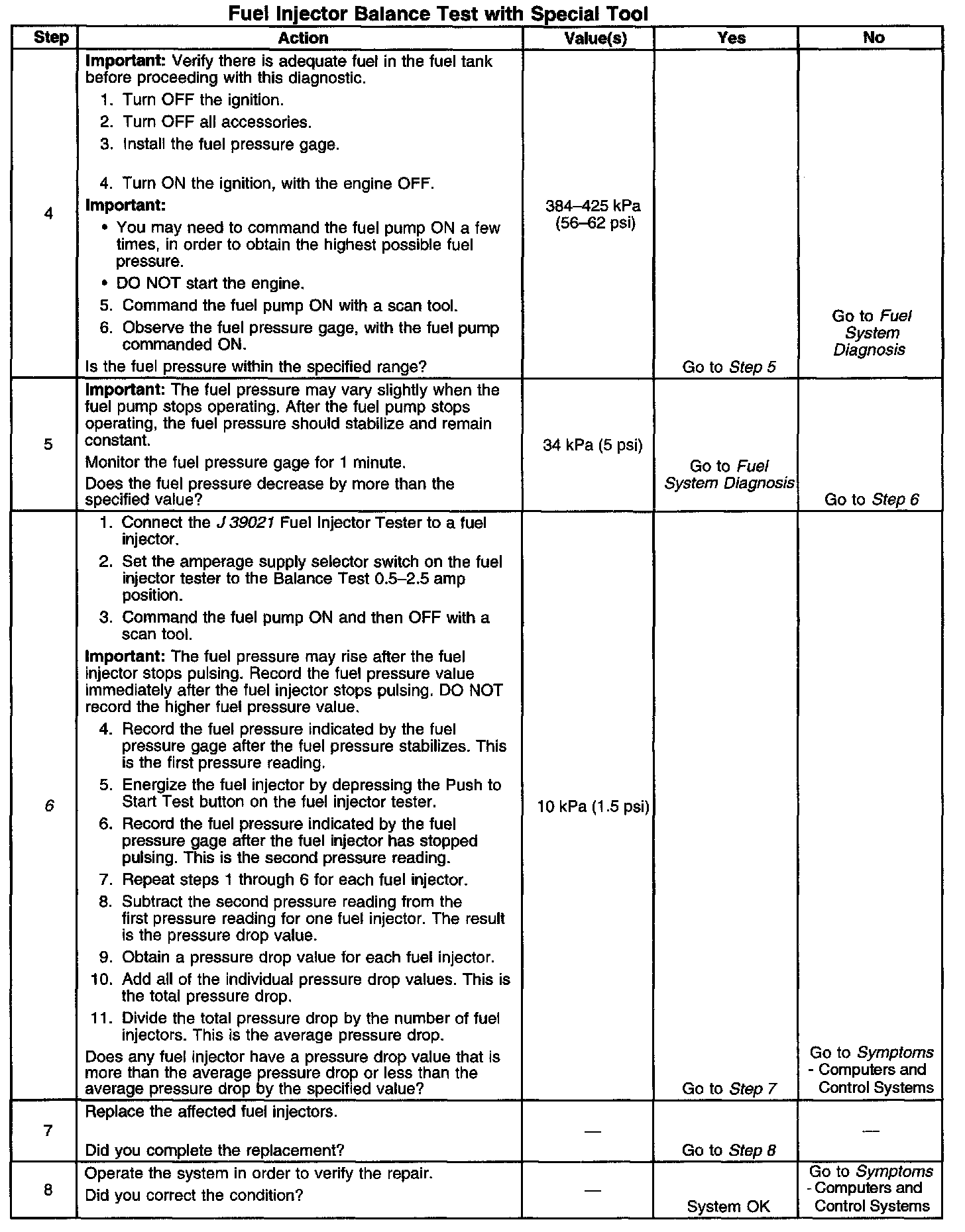 Injector Balance Test Example (Typical):