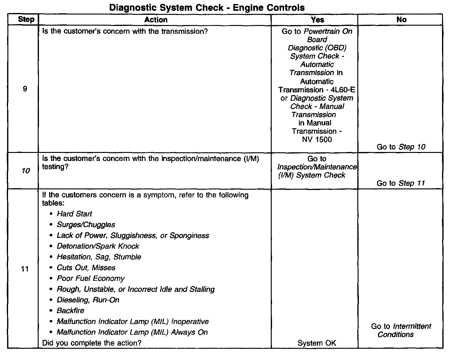 DESCRIPTIONThe Diagnostic System Check-Computers and Controls Systems is an organized approach to identifying a condition that is created by a malfunction in the powertrain control system. The Diagnostic System Check must be the starting point for any driveability concern. The Diagnostic System Check directs the service technician to the next logical step in order to diagnose the concern. Understanding and correctly using the diagnostic table reduces diagnostic time, and prevents the replacement of good parts.