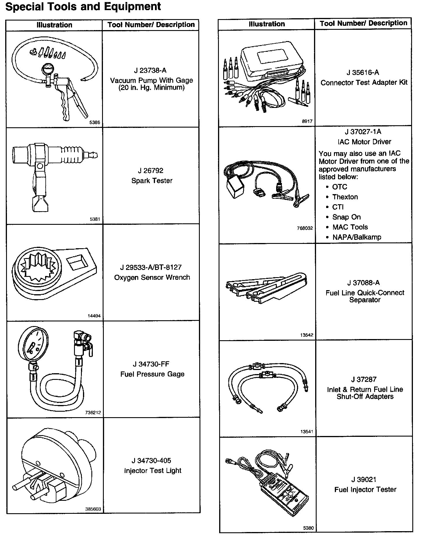 Special Tools And Equipment Part 1: