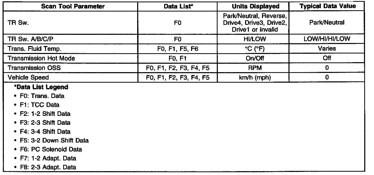 Transmission Scan Tool Data List (2.2 L)Use the scan tool data list under the following conditions: