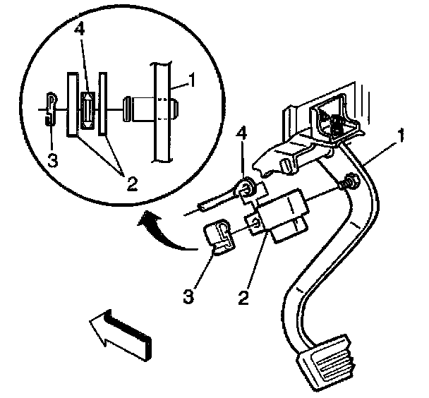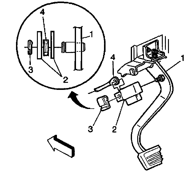 1. Remove the booster pushrod (4) and stop lamp switch (2) from brake pedal (1).
