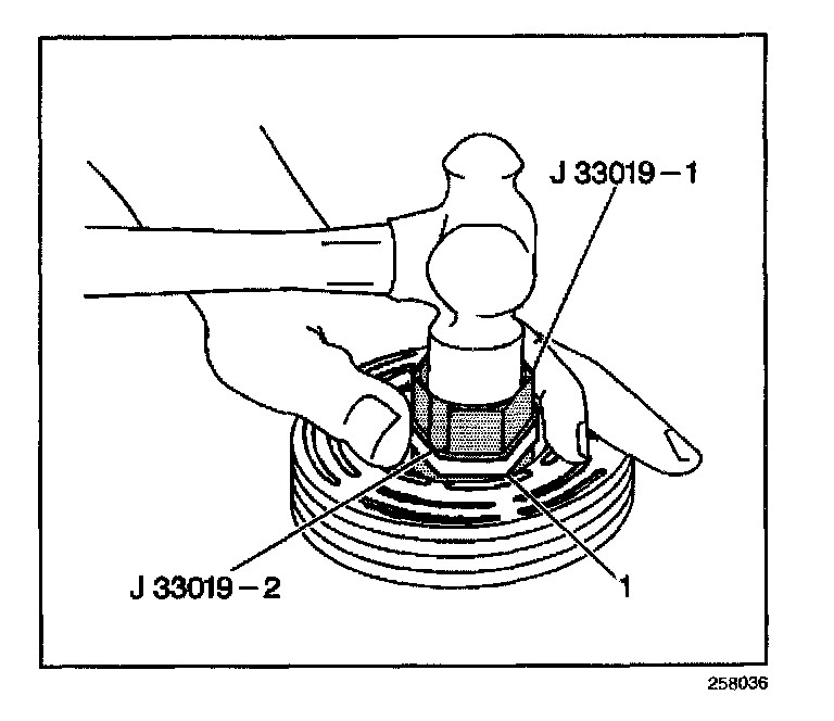 If the J 33017 slips off direct in-line contact with the inner race of the bearing, perform the following steps:
