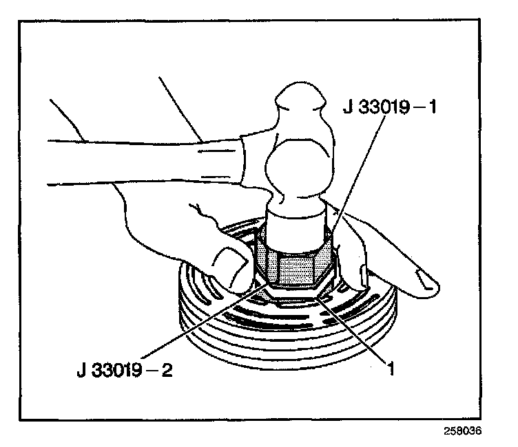 If the J 33017 slips off direct in-line contact with the inner race of the bearing, perform the following steps: