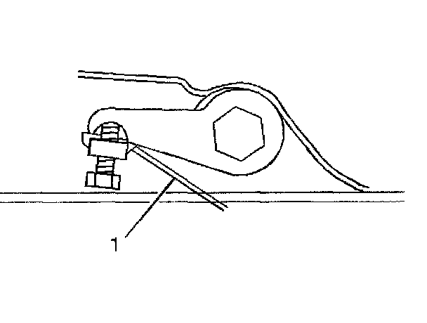 1. For vehicles equipped with a torsion bar suspension, turn the bolt (1) that contacts the torsion arm as needed. One revolution of the bolt (1) into the nut, increases the Z height by approximately 6.0 mm (0.2 inch).