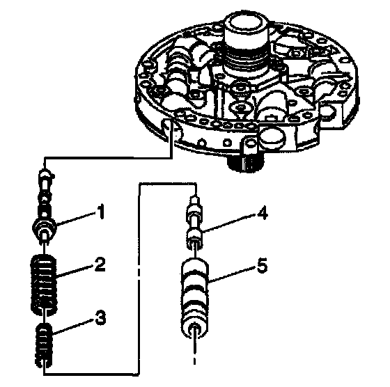 6. Remove the pressure regulator isolator spring (3) and the pressure regulator valve spring (2).