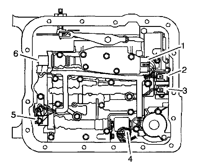 9. Remove the TCC PWM solenoid (1) in order to access the TCC solenoid retaining bolts.
