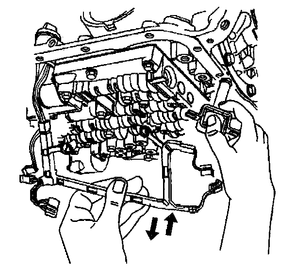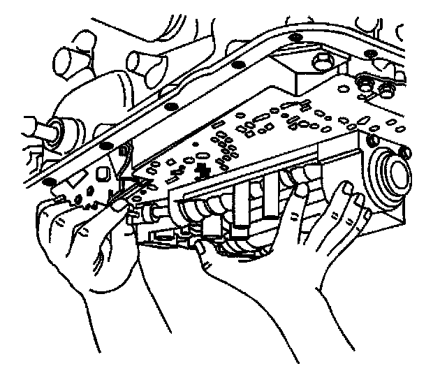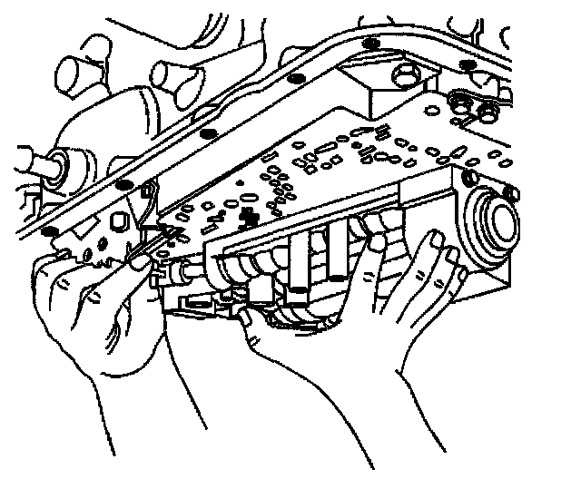 Important: Keep the control valve body level when lowering it from the vehicle. This will prevent the loss of checkballs located in the control valve body passages.