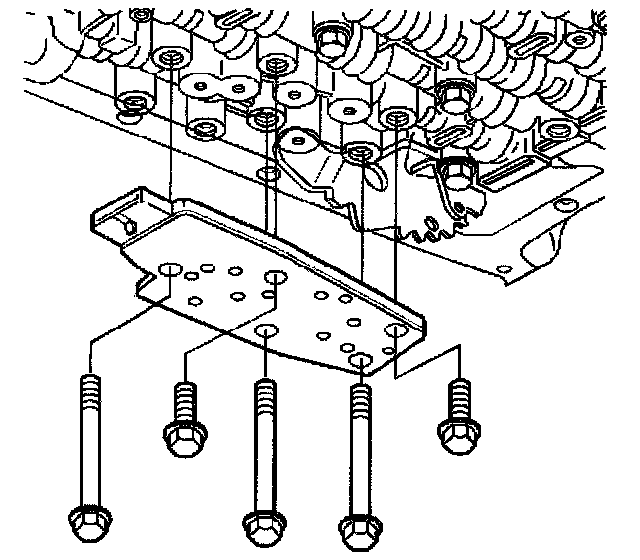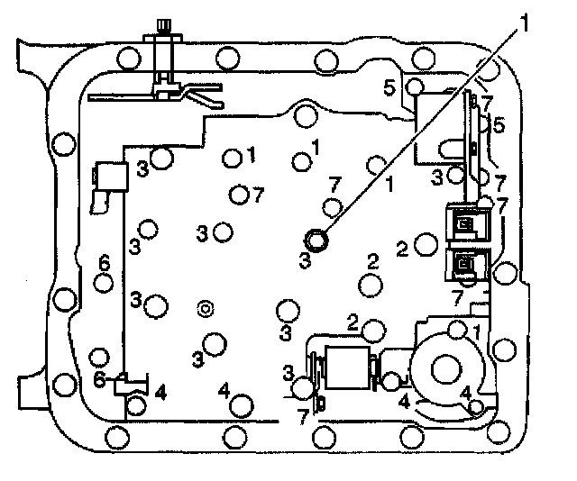 Notice: Refer to Fastener Notice in Service Precautions. Torque valve body bolts in a spiral pattern starting from the center. If the bolts are torqued at random, valve bores may be distorted and inhibit valve operation.