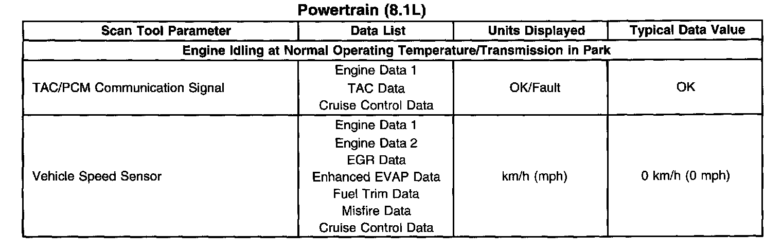 Scan Tool Data List - Powertrain Control Module (PCM)