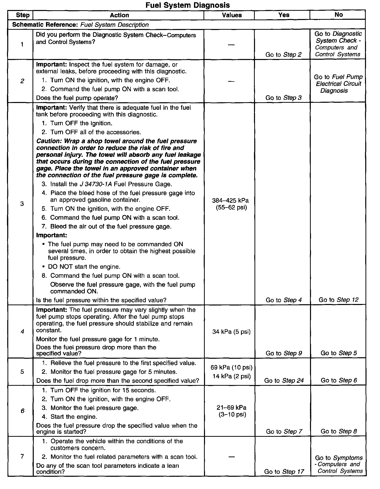 4. This step tests for an internal fuel leak. If the fuel pressure drops during this test, then an internal loss of pressure is indicated.
