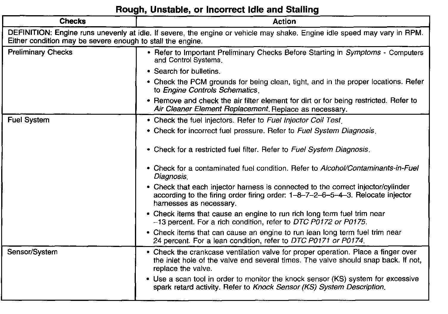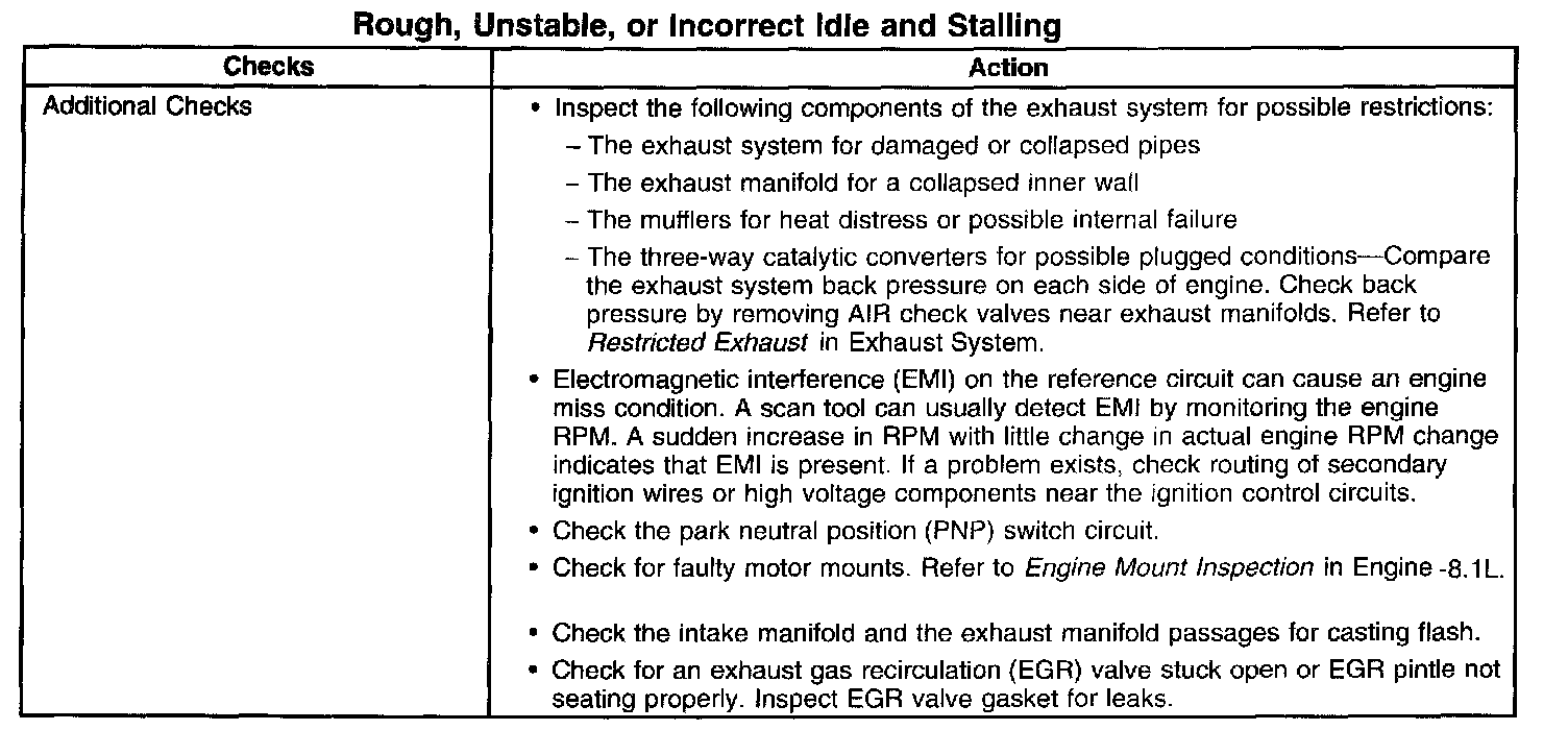 Rough, Unstable, or Incorrect Idle and Stalling