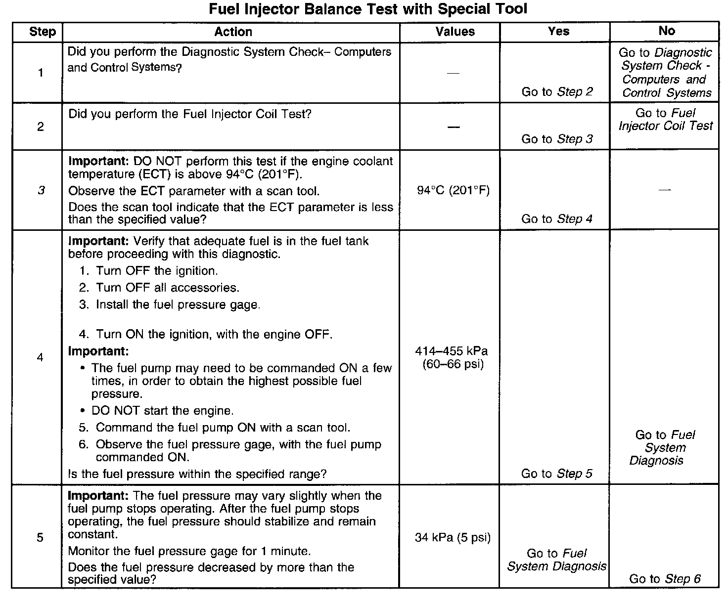 Fuel Injector Balance Test Example (Typical):