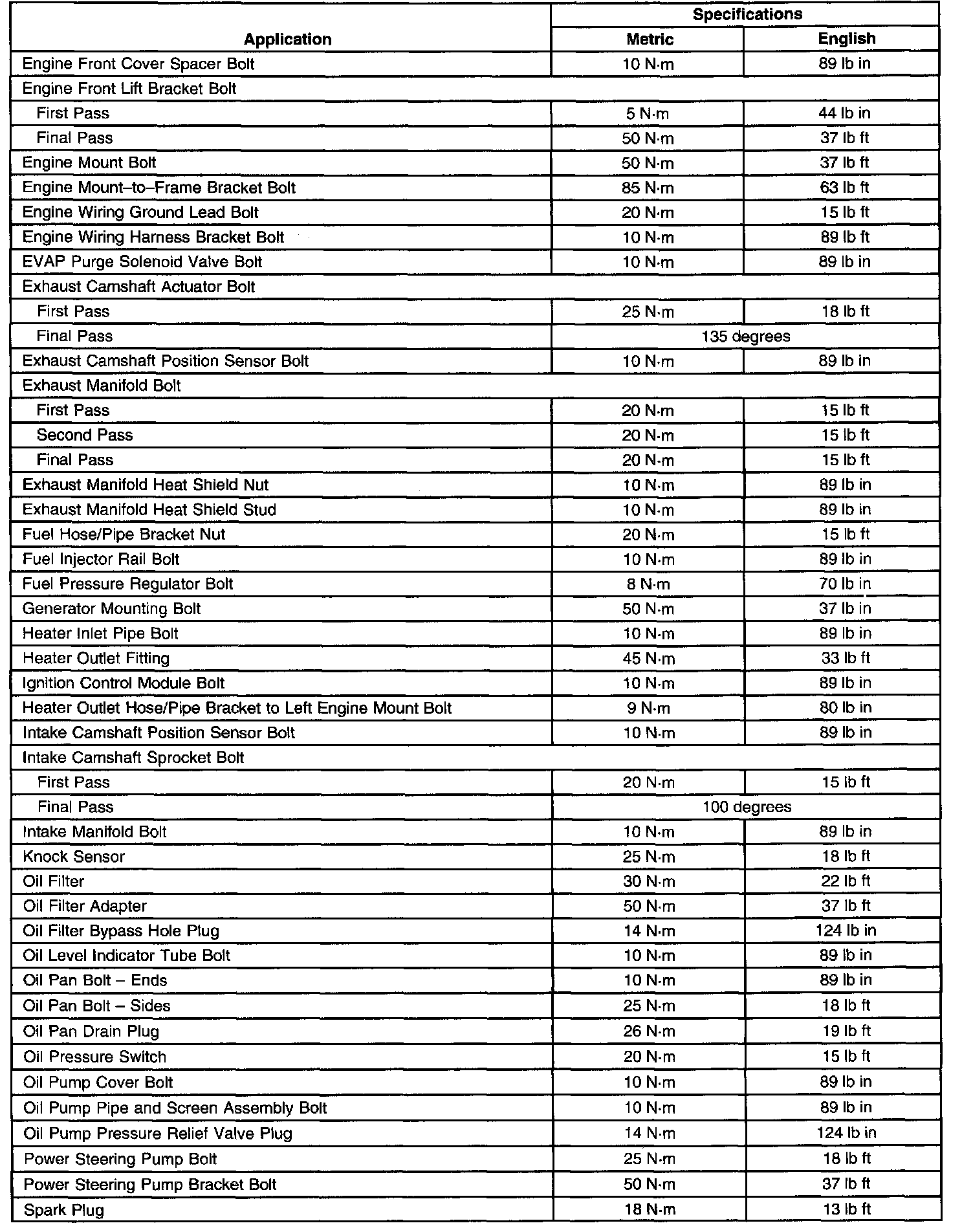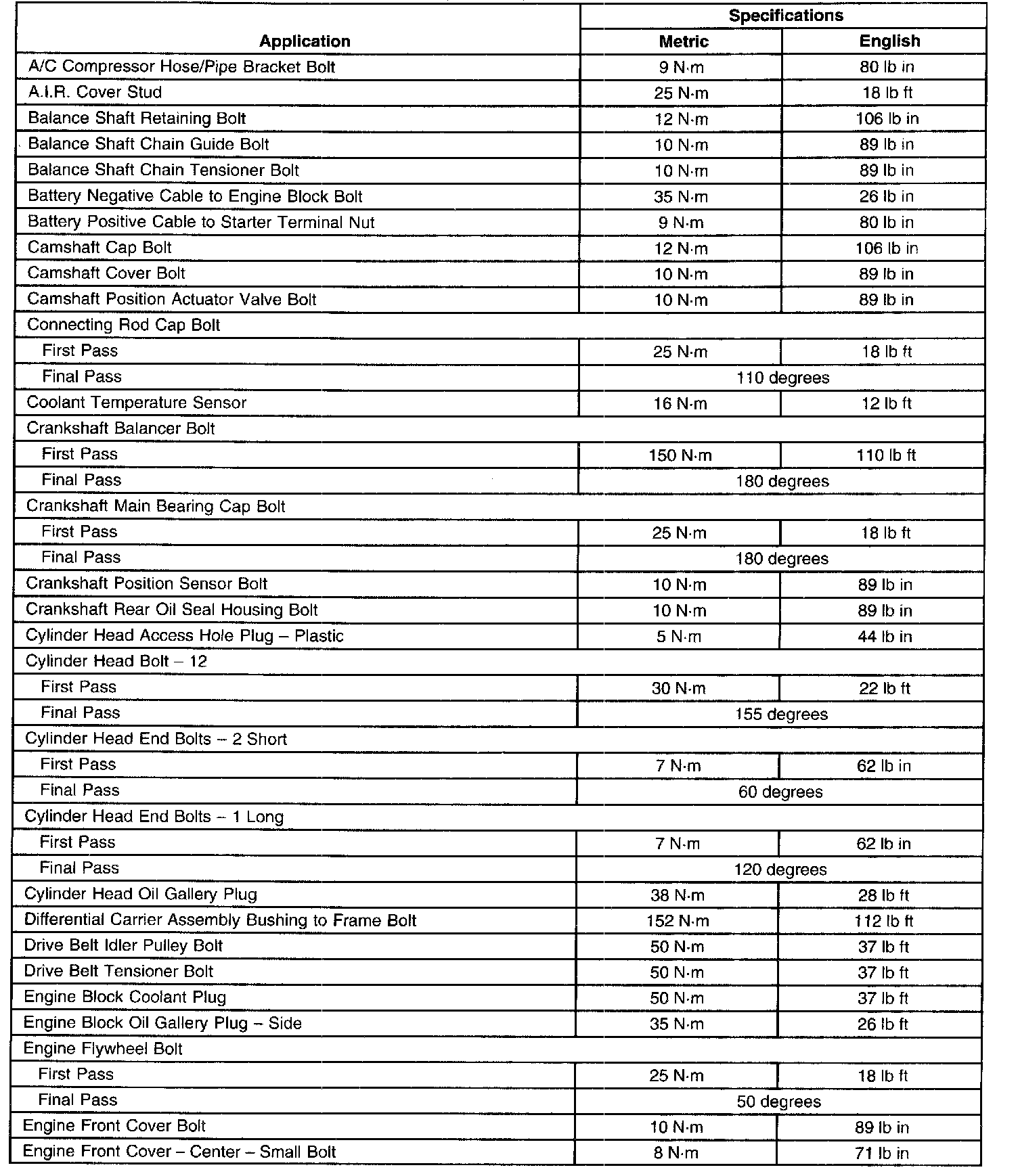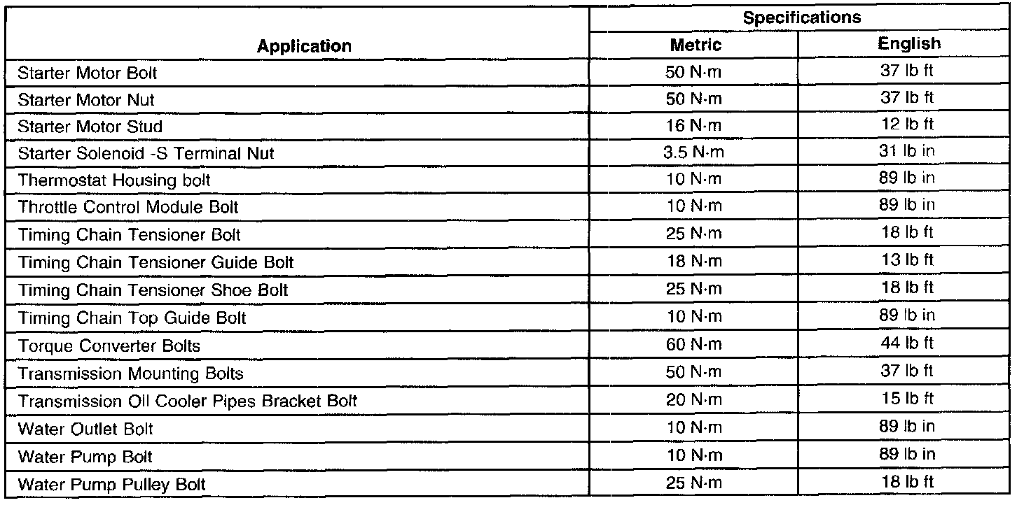 Torque Specifications