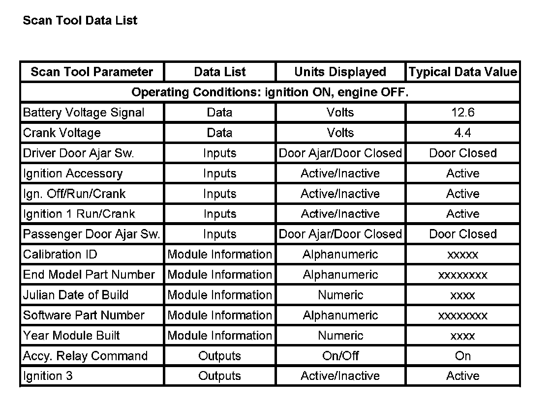 Scan Tool Data List: