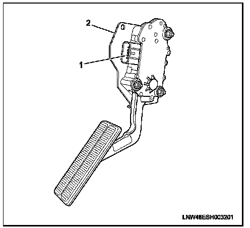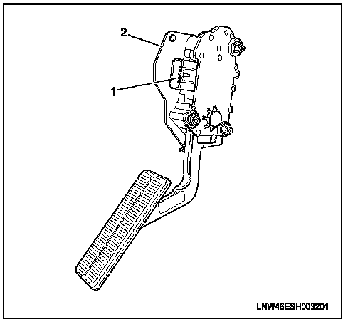 4. Remove the accelerator pedal assembly from accelerator pedal bracket (2).