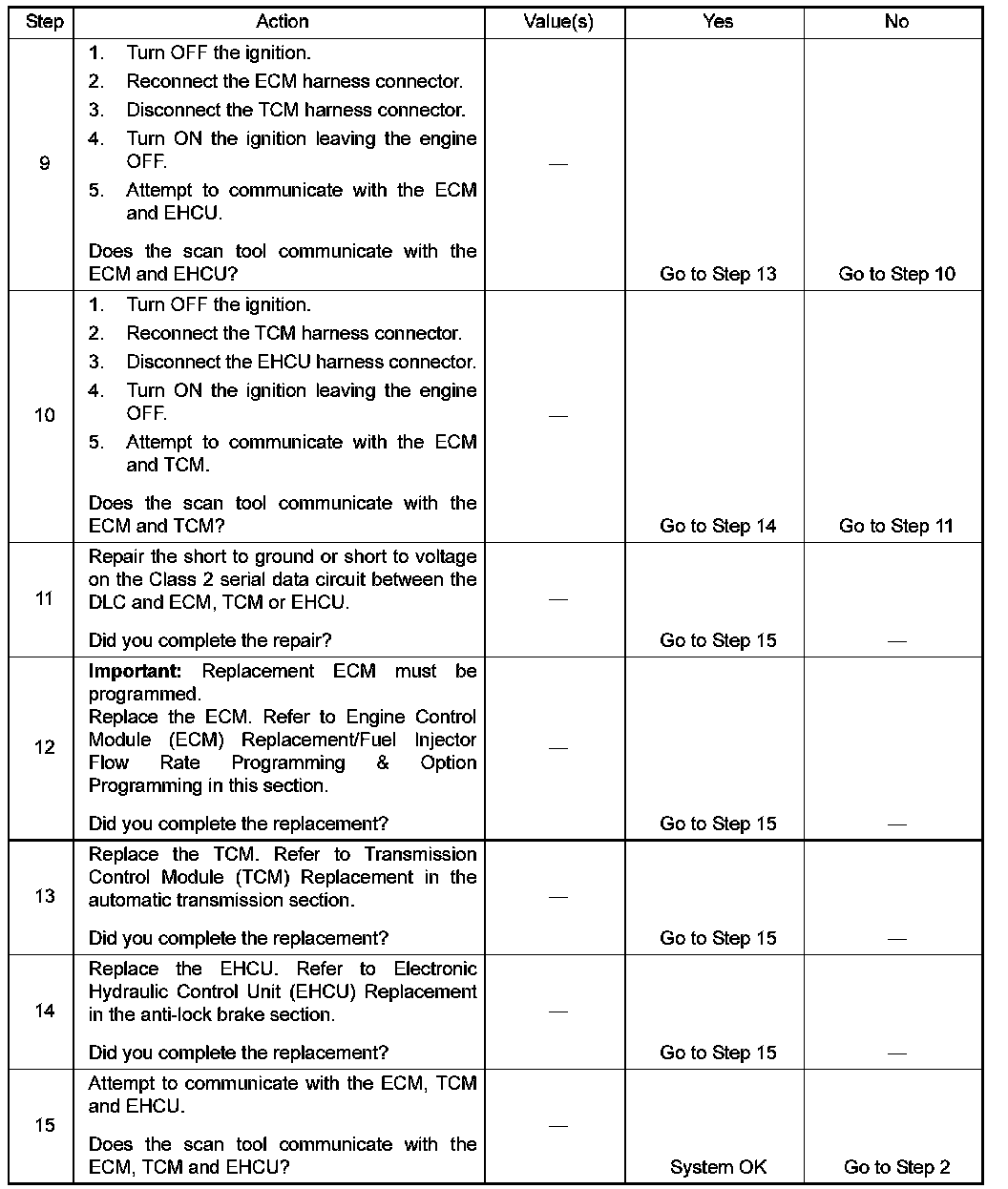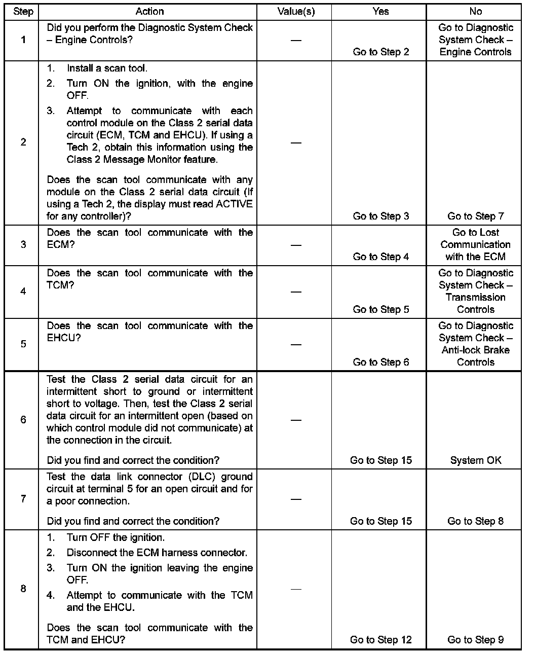 The following conditions will cause a loss of class 2 serial data communication between the TCM and EHCU or between the scan tool and any control module: