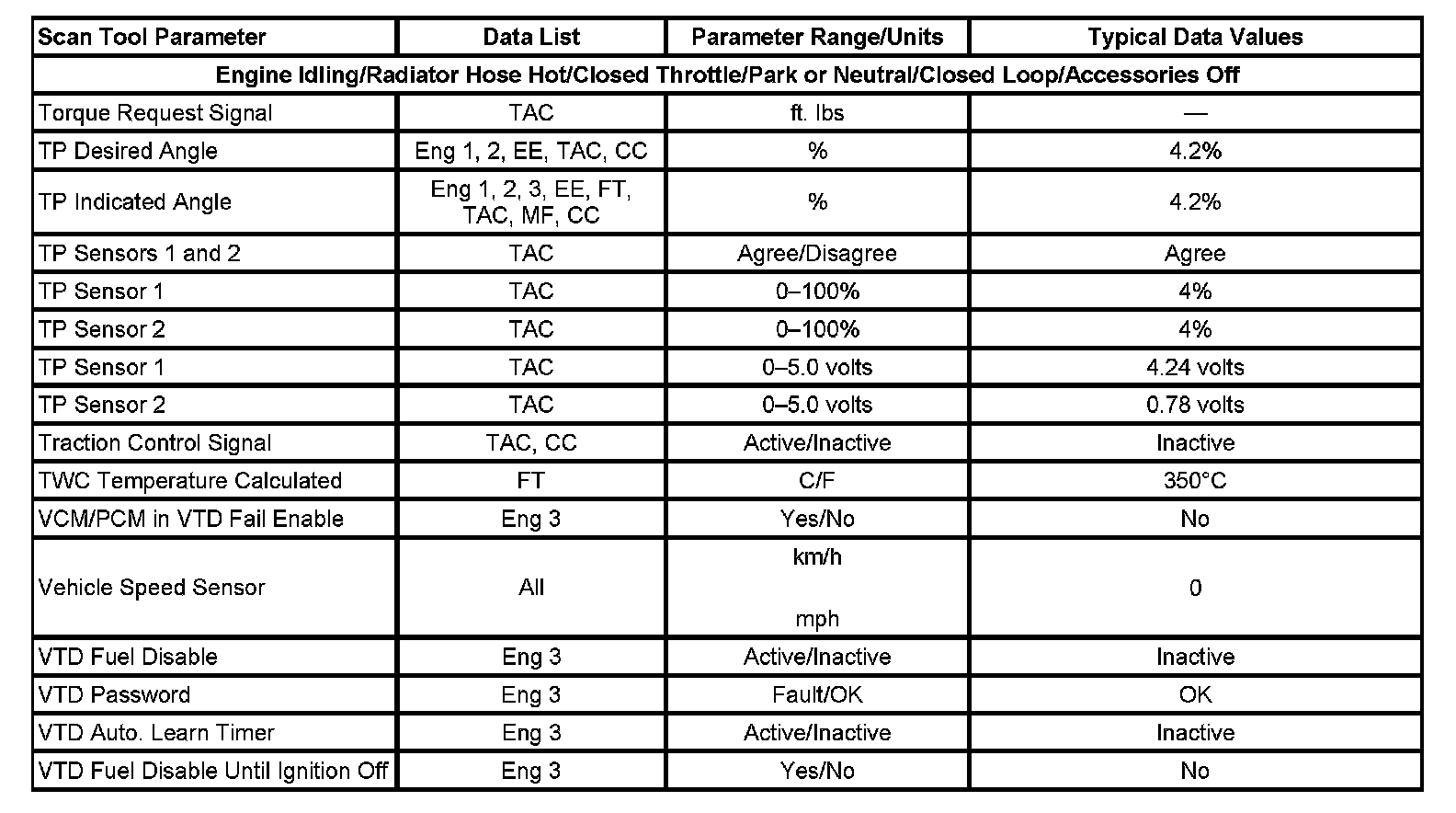 Only the parameters listed below are referenced in this service data for use in diagnosis. If all values are within the typical range described below, refer to Symptoms - Computers and Control Systems for diagnosis. - Symptoms - Engine Controls