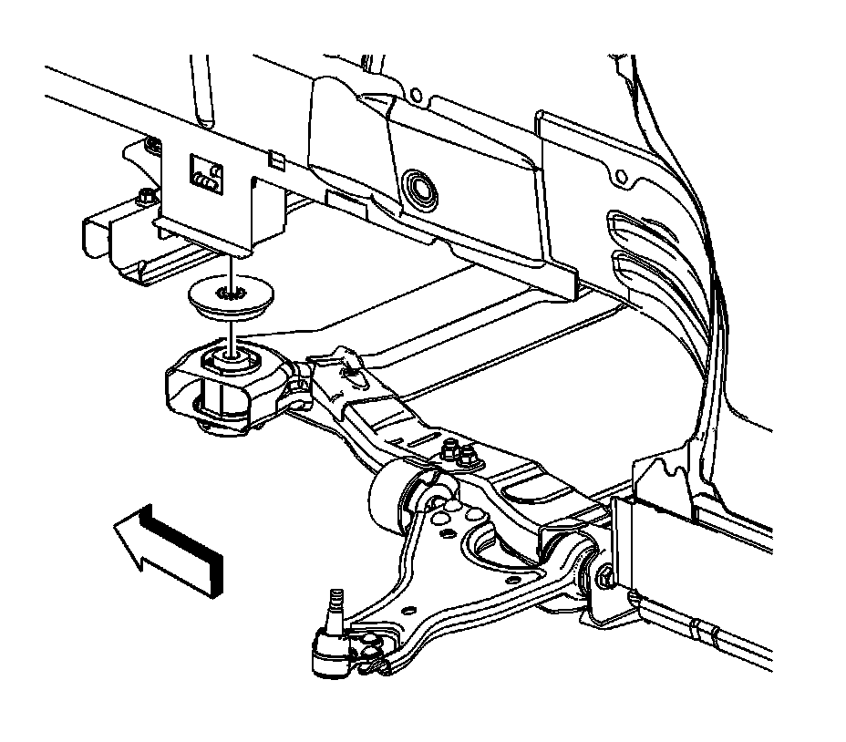 Important:If the frame insulator bolt does not screw in smoothly, run a tap through the frame nut in the body in order to remove foreign material. Ensure the tap does not punch through the underbody.Do not over tighten the insulator. Over tightening may collapse a spacer or strip a bolt.