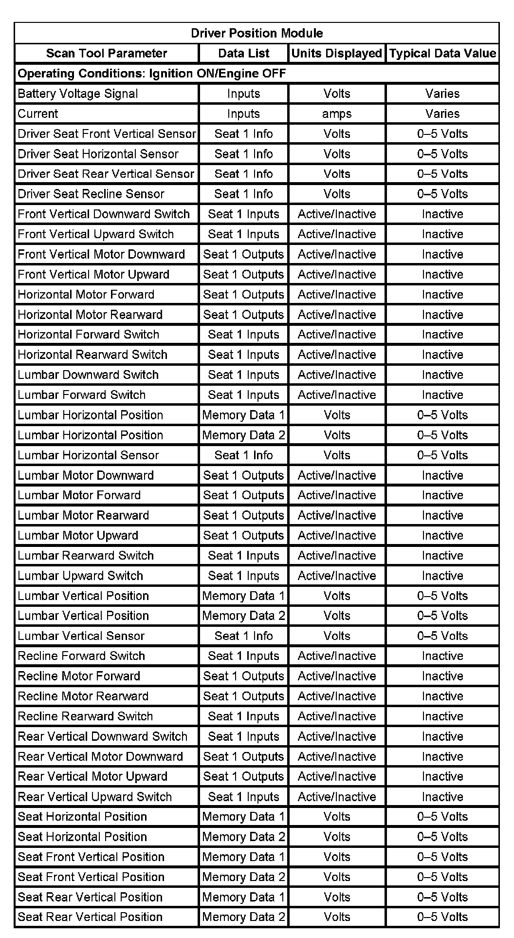 Driver Position Module:
