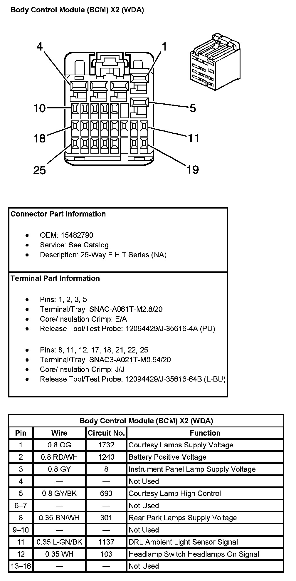Body Control Module (BCM) X2 (With RPO Code WDA) Pin 1 To 16: