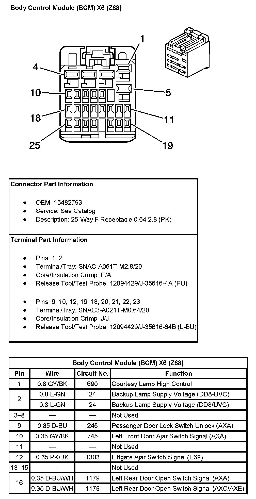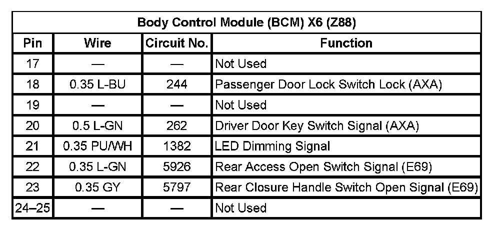 Body Control Module (BCM) X6 (With RPO Code Z88) Pin 17 To 25: