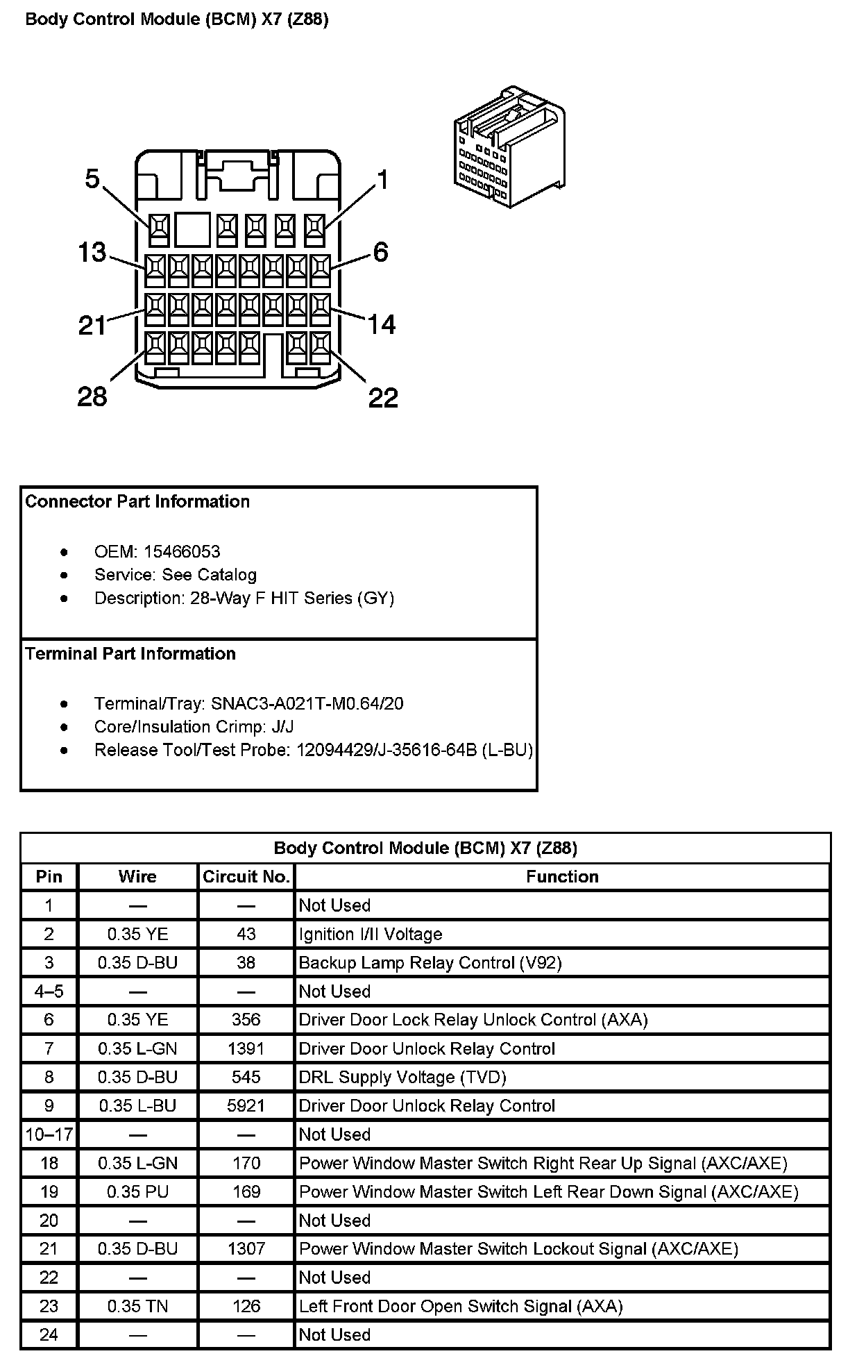 Body Control Module (BCM) X7 (With RPO Code Z88) Pin 1 To 24: