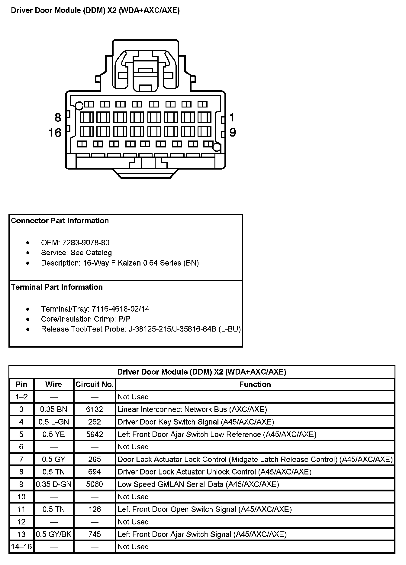 Driver Door Module (DDM) X2 (With RPO Code WDA+AXC/AXE) Pin 1 To 16: