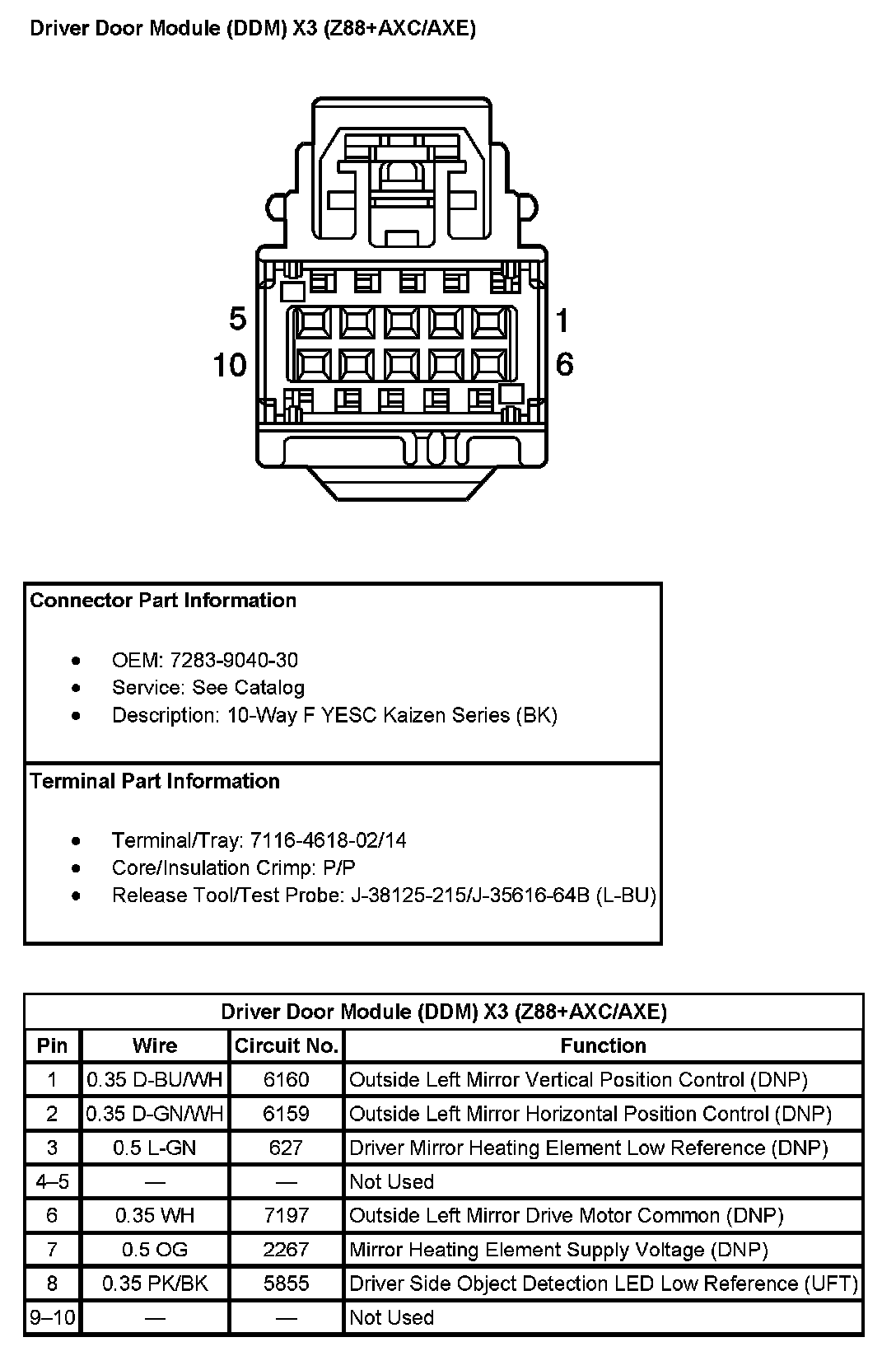 Driver Door Module (DDM) X3 (With RPO Code Z88+AXC/AXE) Pin 1 To 10: