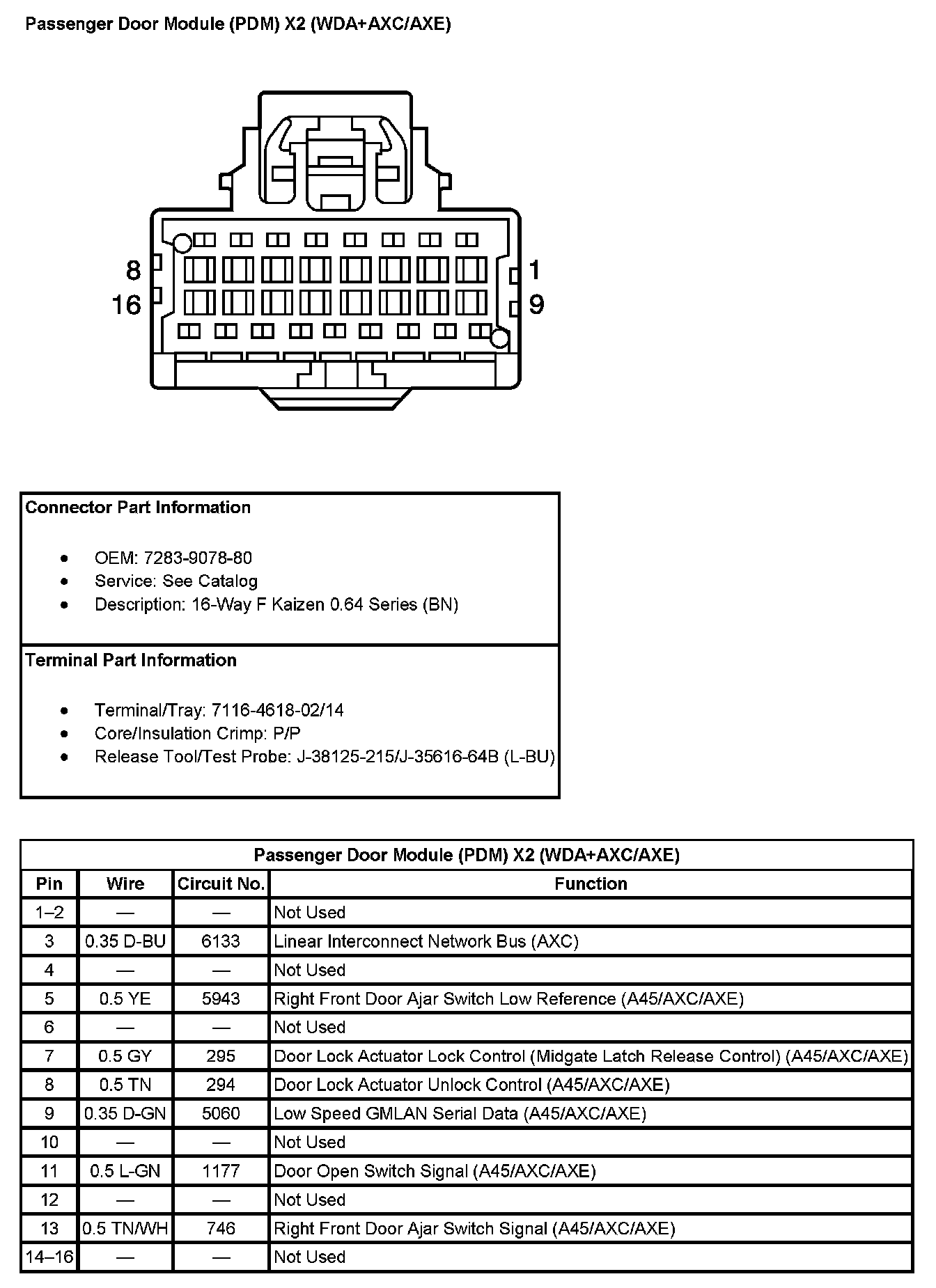 Passenger Door Module (PDM) X2 (With RPO Code WDA+AXC/AXE) Pin 1 To 16: